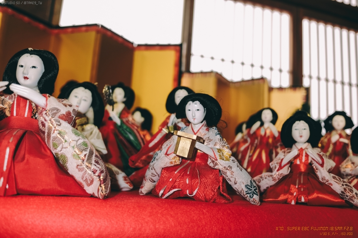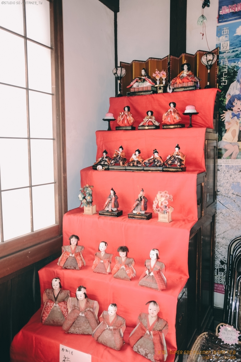 趣のある建物の中や道端のショーウィンドウに、古いのから新しいのから、地元の保育園・幼稚園の子たちが作った可愛いのまで、たくさんのひな人形を並べて観光客に楽しんでもらおうというもの。